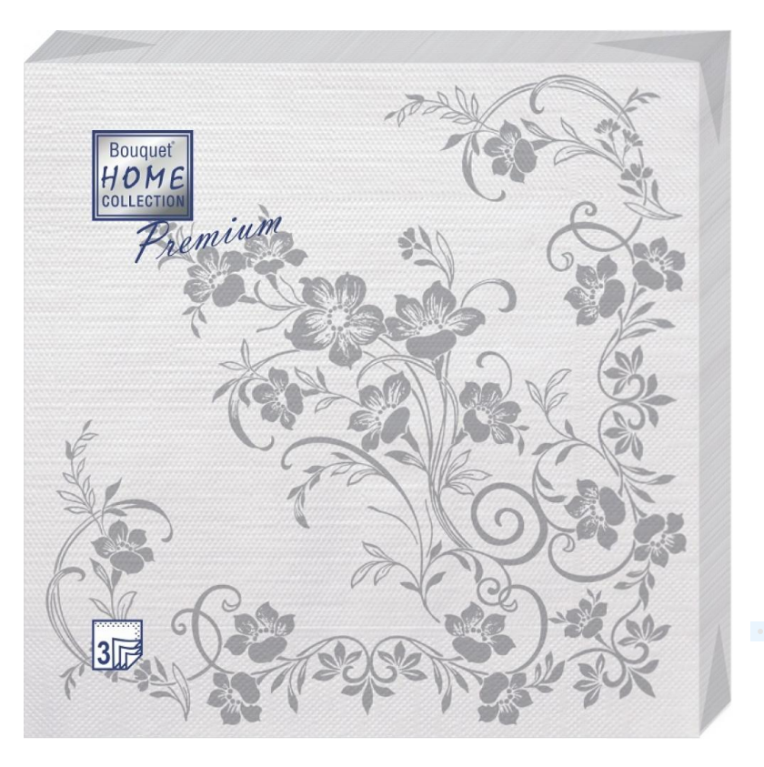 Салфетка 20л 33*33см Серебряный цветок 3сл AutBouquet /12/