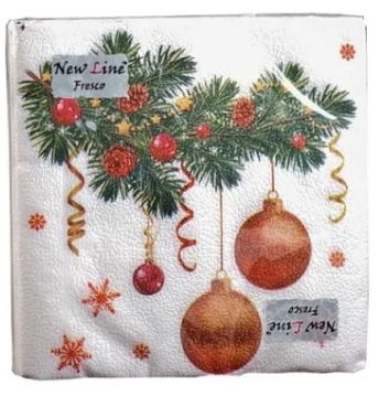 Новогодние бумажные салфетки с нарядным принтом станут украшением для банкетов, фуршетов, праздничного стола дома. Количество салфеток в упаковке 30 листов.