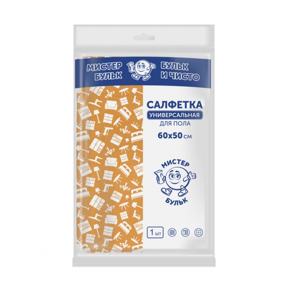 Салфетка для пола «Мистер Бульк» размером 75×65 см предназначена для уборки любых напольных покрытий. Она обладает высокой впитывающей способностью, не оставляет следов и разводов, быстро впитывает жидкости и высыхает.