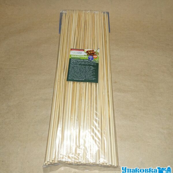 Шампуры из бамбука, длина 40см, количество в упаковке 100 шт. Используются для приготовления мини-шашлыков, овощей на гриле, углях, а так же в духовке, микроволновке. Экологически безопасны, не меняют вкус продуктов.
