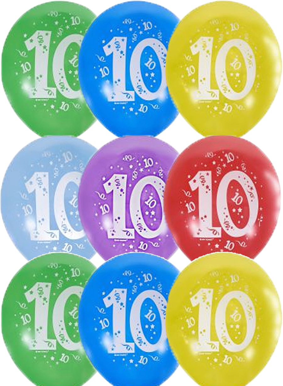 Шары воздушные с рисунком цифра 10. Создают атмосферу праздника, помогут сделать ожидаемый день ярким, веселым и оставить только самые теплые воспоминания. В упаковке 10 штук. Размер шарика в надутом виде 30см.