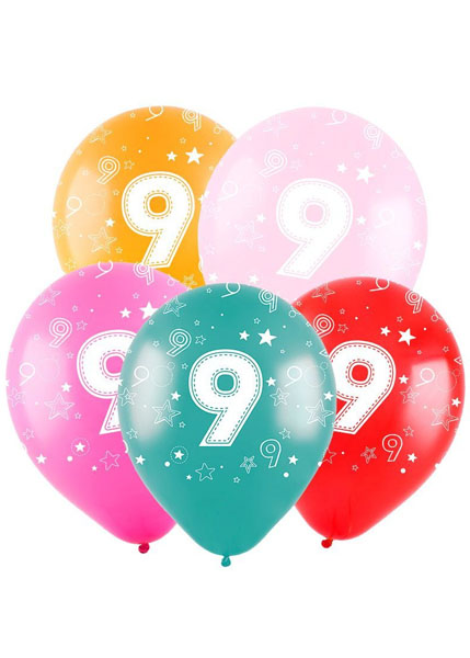 Шары воздушные с рисунком цифра 9. Создают атмосферу праздника, помогут сделать ожидаемый день ярким, веселым и оставить только самые теплые воспоминания. В упаковке 10 штук. Размер шарика в надутом виде 30см.