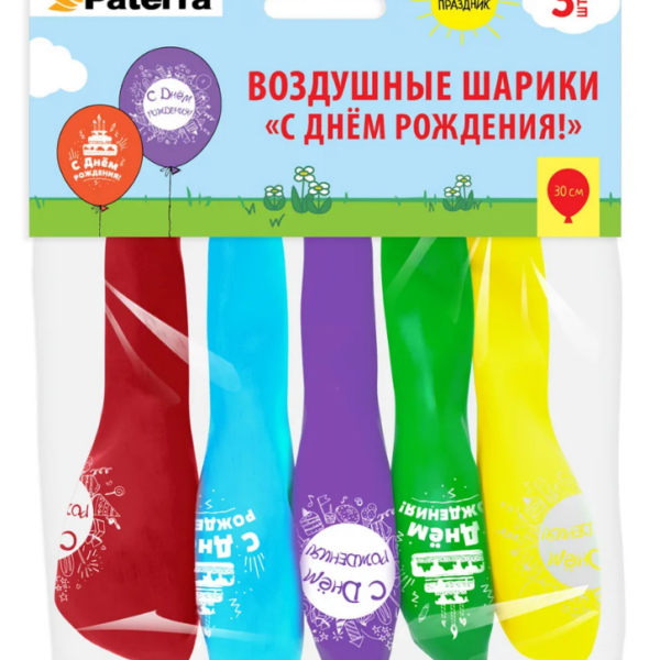 Шары 5шт/уп 12/30см С днем Рождения рисунок Патерра