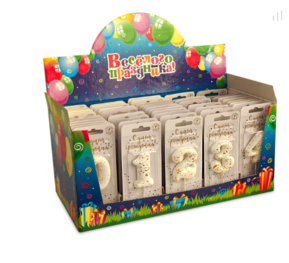 Шоу-бокс со свечами (цифры) “белые брызги” 50шт/уп