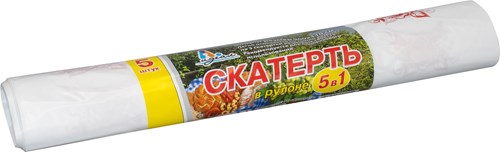 Скатерть одноразовая в рулоне. Изготовлена из полиэтилена, размер 110*180см, в рулоне 5 штук (разделяются по перфорации), плотность 35мкм. Станет отличным украшением для праздничного стола на любом мероприятии.
