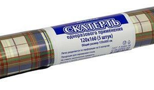 Скатерть одноразовая в рулоне. Изготовлена из полиэтилена, размер 120*160см, в рулоне 5 штук (разделяются по перфорации), плотность 35мкм. Станет отличным украшением для праздничного стола на любом мероприятии.