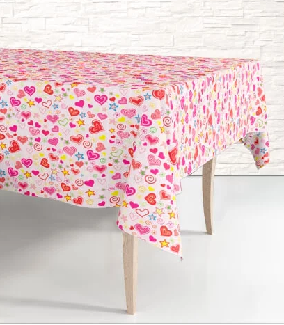 Скатерть одноразовая в рулоне. Изготовлена из полиэтилена, размер 110*180см, в рулоне 5 штук (разделяются по перфорации), плотность 35мкм. Станет отличным украшением для праздничного стола на любом мероприятии.
