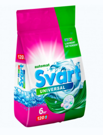 Универсальный стиральный порошок «SVART-Автомат» с энзимами предназначен для стирки в автоматических стиральных машинах, машинах активаторного типа и ручной стирки белых и цветных изделий из хлопчатобумажных, льняных, синтетических тканей, а также тканей из смешанных волокон (кроме изделий из натурального шёлка и шерсти).