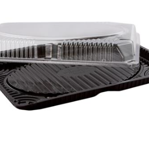 Контейнер СП-25 используется в качестве упаковки для суши и роллов, также подходит для фасовки восточных сладостей, готовой кулинарии. Изготовлен из ПЭТ черного цвета. Размер 242х168х30 мм.