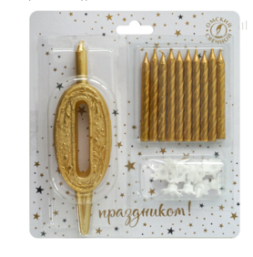 Набор свечей классическое золото для торта с цифрой 3 + 10 свечей с подставкой — служит для украшения праздничного торта.