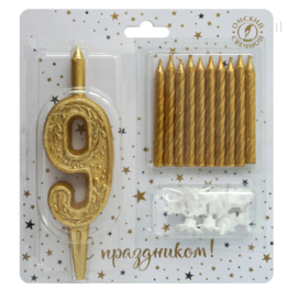Набор свечей цифра 9 +классические золото