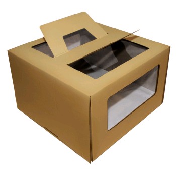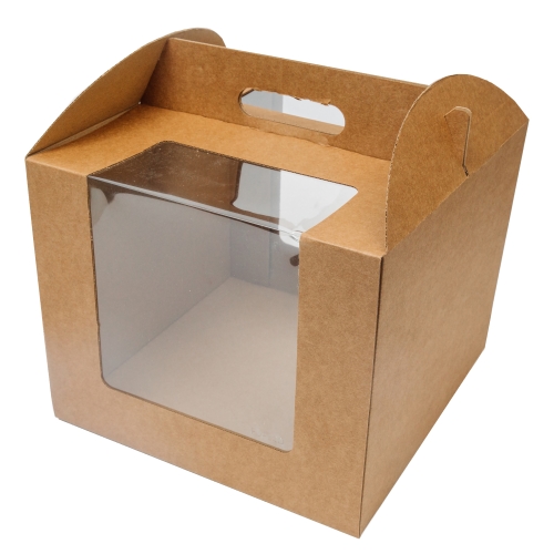 Коробка 300*300*190мм бур д/торта окно ,ручка бурая 25шт/кор