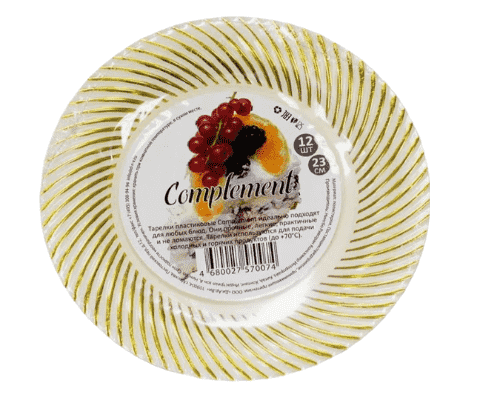 Тарелка Д-190мм пластик золотая кайма Complement 6шт/уп