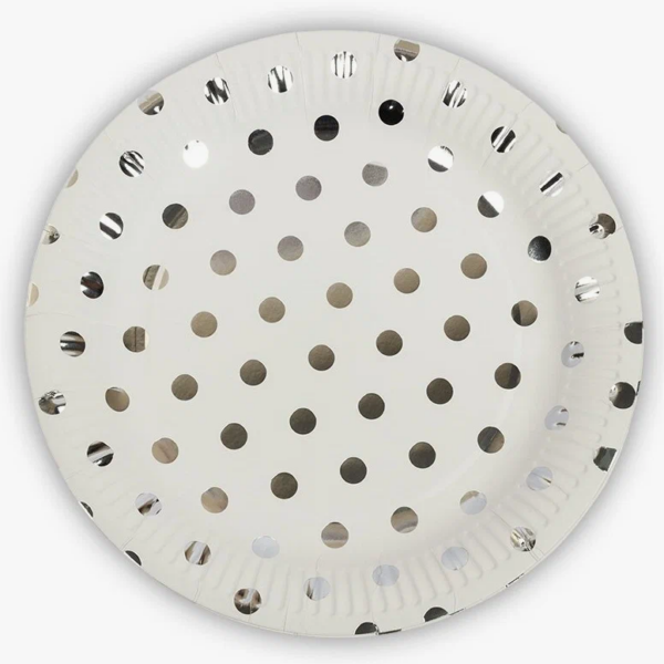 Набор одноразовых картонных тарелок Люкс Горох серебро,количество 10 штук, диаметр 220мм. Экологичная посуда добавит настроение торжеству, украсит фуршет, выездное мероприятие, корпоратив и детский праздник. Набор тарелок удобно взять с собой на пикник, в поход, на прогулку.