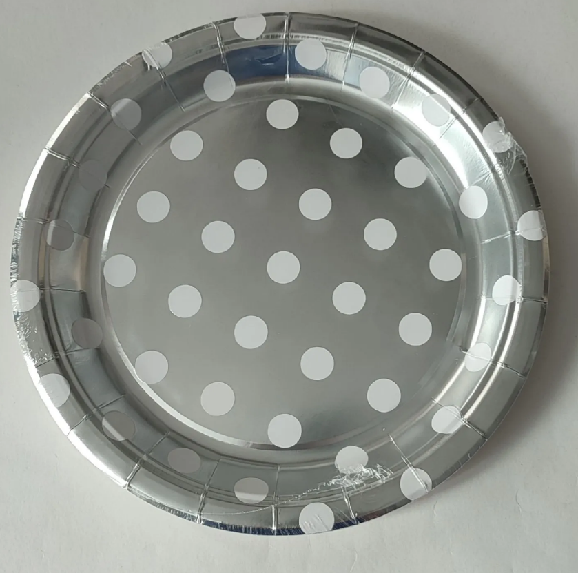 Тарелка Д-220мм картон Люкс Горох серебро Т230 10/2000