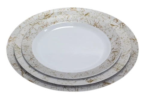 Тарелка одноразовая, мелкая, с каемочкой под мрамор, изготовлена из полипропилена, диаметр 230 мм, в упаковке 6 штук. Прекрасно подойдет для детских праздников, вечеринок, корпоративных мероприятий, пикников.