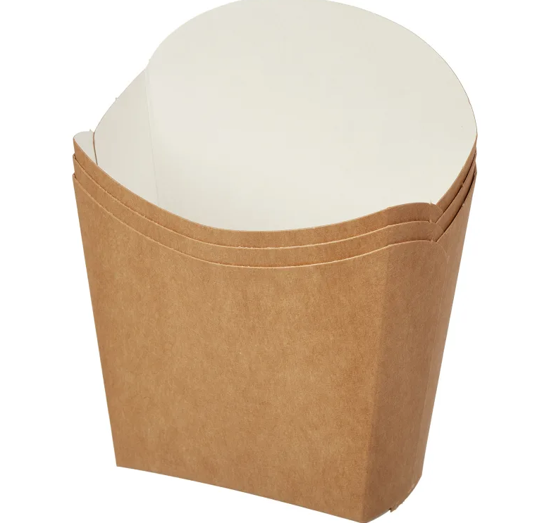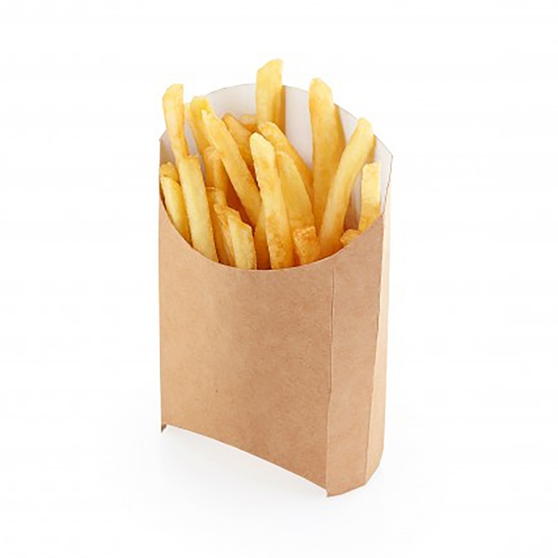 Упаковка для картофеля фри FRY размера M (малая) цвета «Крафт». Подходит для упаковки порций картофеля фри весом 110 грамм. Устойчива к влаге и не пропускает жир, что позволяет сохранять картофель фри свежим и хрустящим. В упаковке 50 шт.