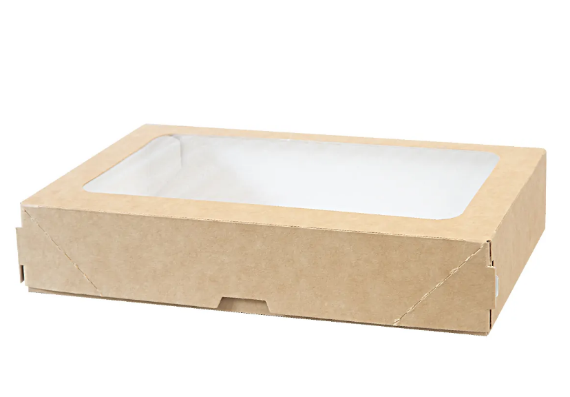 Контейнер из целлюлозного крафт-картона с окном. Размер: 260*150*40мм. Подходят для десертов, суши, роллов, фастфуда, "еды на вынос". Возможно использовать в СВЧ.
