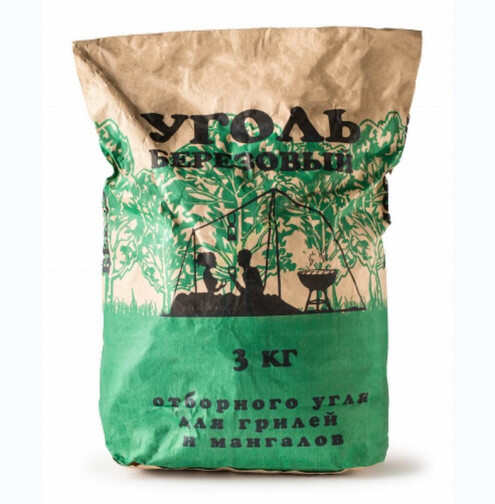 Древесный берёзовый уголь весом 3 кг используют для приготовления пищи на открытом воздухе с помощью мангала, гриля или барбекю. Имеет в составе фракции среднего и крупного размера, которые долго прогорают, снижая расход угля.