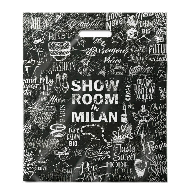 Стильный пакет с вырубной ручкой, размер 30*40см, плотность 50мк. Пакет служит для упаковки косметических средств, бижутерии, канцелярских товаров, небольших подарков, игрушек. Продается по 50 штук.