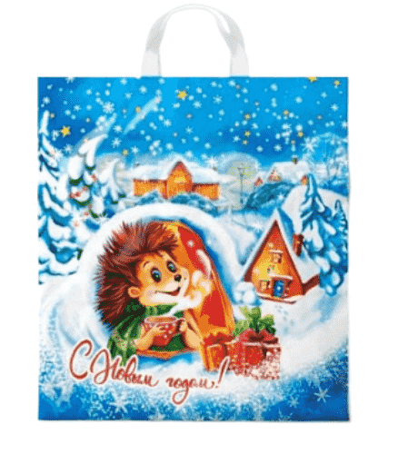 Новогодний пакет с вырубной ручкой, размер 40*47см, плотность 45мк. Пакет служит для упаковки косметических средств, подарков, игрушек. Продается по 50 штук.