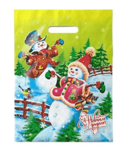 Новогодний пакет с вырубной ручкой, размер 38*45см, плотность 60мк. Пакет служит для упаковки косметических средств, небольших подарков, игрушек. Продается по 50 штук.