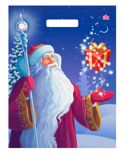 Новогодний пакет с вырубной ручкой, размер 20*30см, плотность 30мк. Пакет служит для упаковки косметических средств, бижутерии, небольших подарков, игрушек. Продается по 100 штук.