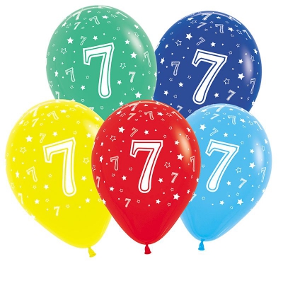 Шары воздушные с рисунком цифра 7. Создают атмосферу праздника, помогут сделать ожидаемый день ярким, веселым и оставить только самые теплые воспоминания. В упаковке 10 штук. Размер шарика в надутом виде 30см.