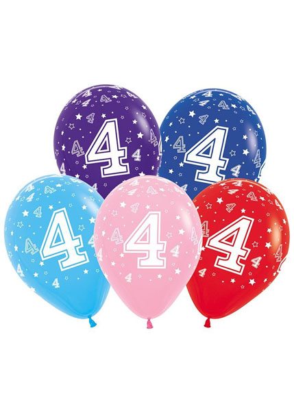 Шары воздушные с рисунком цифра 4. Создают атмосферу праздника, помогут сделать ожидаемый день ярким, веселым и оставить только самые теплые воспоминания. В упаковке 10 штук. Размер шарика в надутом виде 30см.