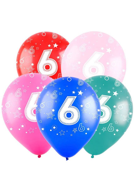 Шары воздушные с рисунком цифра 6. Создают атмосферу праздника, помогут сделать ожидаемый день ярким, веселым и оставить только самые теплые воспоминания. В упаковке 10 штук. Размер шарика в надутом виде 30см.