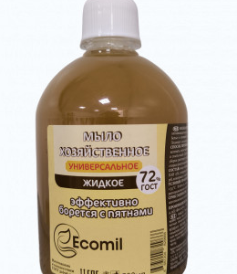 Жидкое хозяйственное мыло универсальное 72% с эффектом пятновыводителя, предназначено для удаления пятен, мытья посуды, ручной стирки белья и влажной уборки помещений. Антибактериальное, густое моющее средство. Подходит для мытья рук, не раздражает кожу. Объем 500мл.